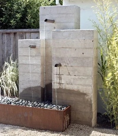 這種簡單的水景,具有很強烈的工業(yè)設(shè)計感,是由現(xiàn)澆的混凝土制成的。