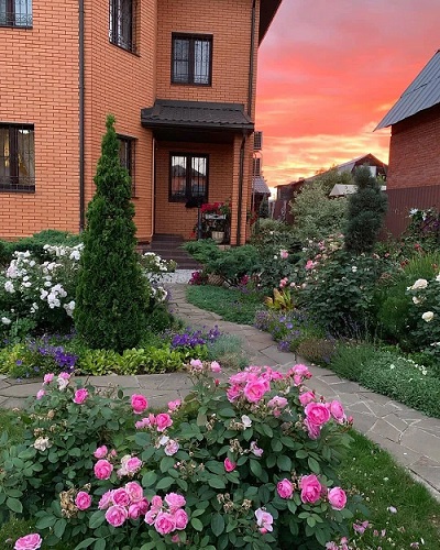 為了達到讓人眼前一亮的效果,需要在庭院景觀設計中選用焦點植物,并且焦點植物要具備與焦點風景相稱的特質(zhì)。在中等庭院中,在灌木叢中,可以選用紅花作為焦點植物進行點綴。如選用杜鵑花、玫瑰花都能很好的實現(xiàn)景觀效果。還要,在自然式庭院中,需要利用多變的線條和色彩來吸引游客的興趣。一般可以利用植物拼成的圖案來實現(xiàn)。如在紅豆杉前,利用黃色、綠色、紫色等進行相互點綴,就會顯得格外耀眼。