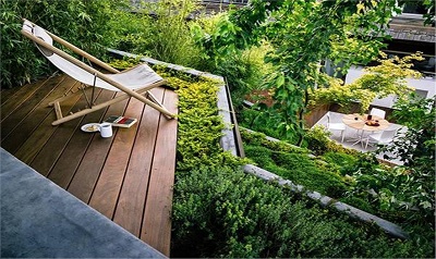 公寓建筑可能會(huì)將一個(gè)小陽(yáng)臺(tái)用作花園。獨(dú)戶(hù)住宅都會(huì)有小花園。任何一個(gè)露臺(tái)、走廊以及未利用的戶(hù)外空間也能用作花園設(shè)計(jì)。綠色屋頂以及屋頂花園也同樣適用。尤其是建筑頂部如車(chē)庫(kù)屋頂或傾斜屋頂都能設(shè)計(jì)成花園,變成對(duì)地球有益的東西。