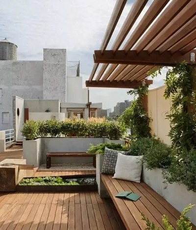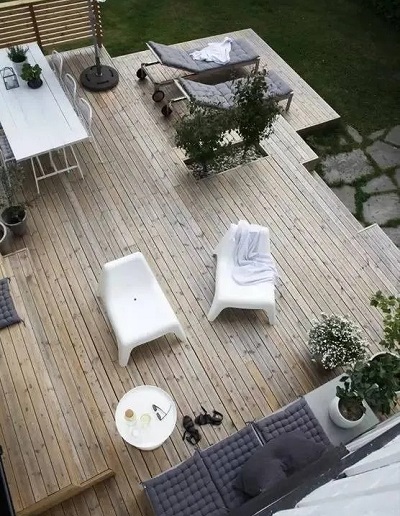 如果您的別墅花園地形不是特別理想,可以考慮稍微進(jìn)行一些改造、在混凝土之上再搭建木平臺(tái)。