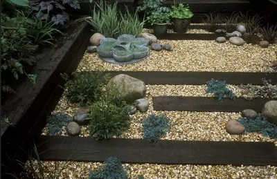 山石多種多樣,質(zhì)地也各不相同,青苔滿布的山石和光滑的大理石或卵石都是細(xì)質(zhì)地;小卵石和礫石鋪面都是中等質(zhì)地;亂石堆砌的擋土墻、自然的駁岸、未經(jīng)打造的山石都是粗質(zhì)地。山石與花木可以完美融合,相得益彰,哪怕只是簡單的頑石縫隙中流瀉的幾叢多肉植物,就可以營造出別樣的趣味。