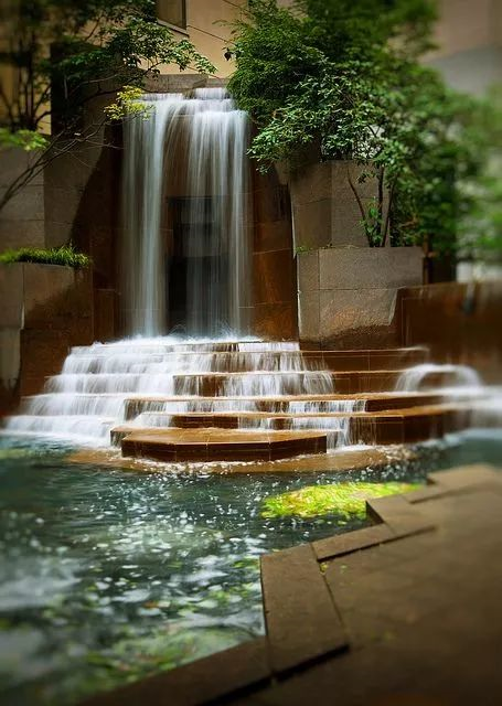 水景,可以讓別墅小院立刻有了靈魂。一般庭院水景通常分為瀑布跌水、生態(tài)水景、溪流、泳池靜水以及其他裝飾水景。人工瀑布主要采用天然石材或仿石材設(shè)置瀑布的背景和引導(dǎo)水的流向。