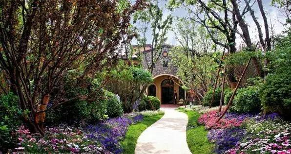 別墅庭園色彩也是影響庭園風(fēng)格的因素之一,對色彩規(guī)劃的一個技巧是根據(jù)建筑色彩與周圍環(huán)境確定庭園的主色調(diào)。觀葉植物在花園的設(shè)計中很重要,在英國等歐洲國家,認為花壇中栽種些觀葉植物是很自然的事情。綠色中嵌有白斑的斑葉植物比純綠色種類明度高,如銀葉的雪葉蓮、朝霧蒿草等,可將花壇襯托得更明亮,其他另栽具有橙色、紅色及紫色葉的彩葉植物,可形成強烈的對比,增加色調(diào)的明快感。此外還可考慮還有葉形的變化、質(zhì)感的差異等。