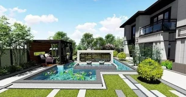 新中式別墅庭院設計元素流水、花園、菜園