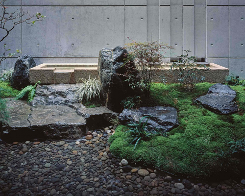 中式庭院景觀以水景為中心,水景及假山仿佛能濃縮自然千山萬(wàn)水之景象,幾塊山石前簇后擁,白砂一片,