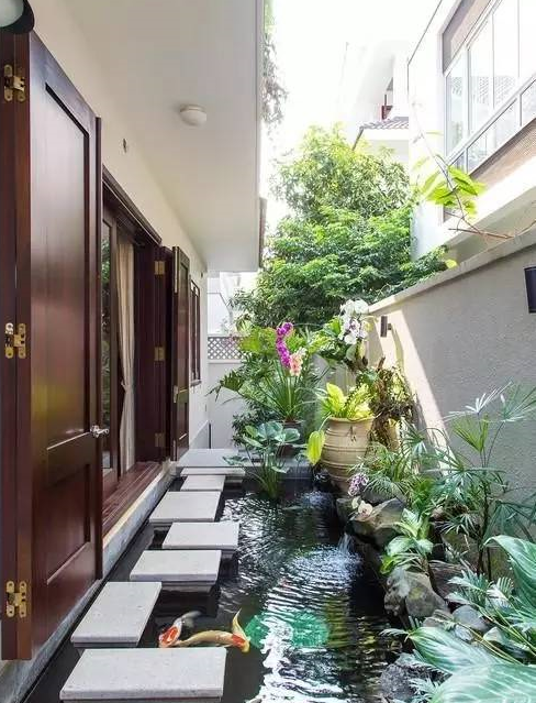 新中式風(fēng)情庭院水景設(shè)計(jì)——花卉、流水、山石、游魚、睡蓮、綠植.....美上了天!
