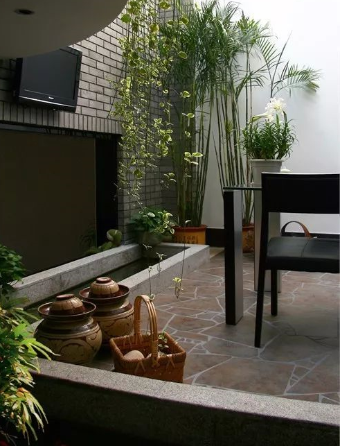 在庭院設(shè)計(jì)中,設(shè)計(jì)者們常常以水池為中心,將山石、游魚、睡蓮、花木或與其他藝術(shù)品組合,