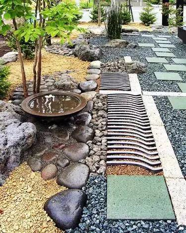 石與水,剛與柔?,F(xiàn)代庭院中,設(shè)石與水于一處,剛?cè)岵?,又充滿古詩詞般韻味。